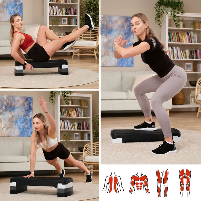 Cvičebný schodík s rozmermi 78 x 30 cm skvele zapadne do každého priestoru a nebude robiť problémy ani v malej garsónke. Vďaka kompaktnej veľkosti je uloženie stúpadla jednoduché a pohodlné a jeho všestrannosť umožňuje vykonávať mnoho druhov tréningu, ako je kardio, posilňovanie svalov nôh, zadku alebo intervalový tréning.