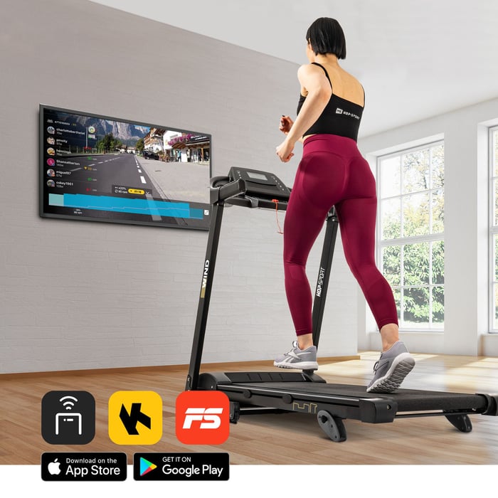 Bezplatná mobilná aplikácia FitShow, kompatibilná s elektrickým bežeckým pásom Wind, zaručuje rozmanitosť tréningov. Aplikácia tiež umožňuje uložiť si svoj postup. Priebeh tréningu je možné sledovať na tablete, smartfóne alebo televíznej obrazovke.
