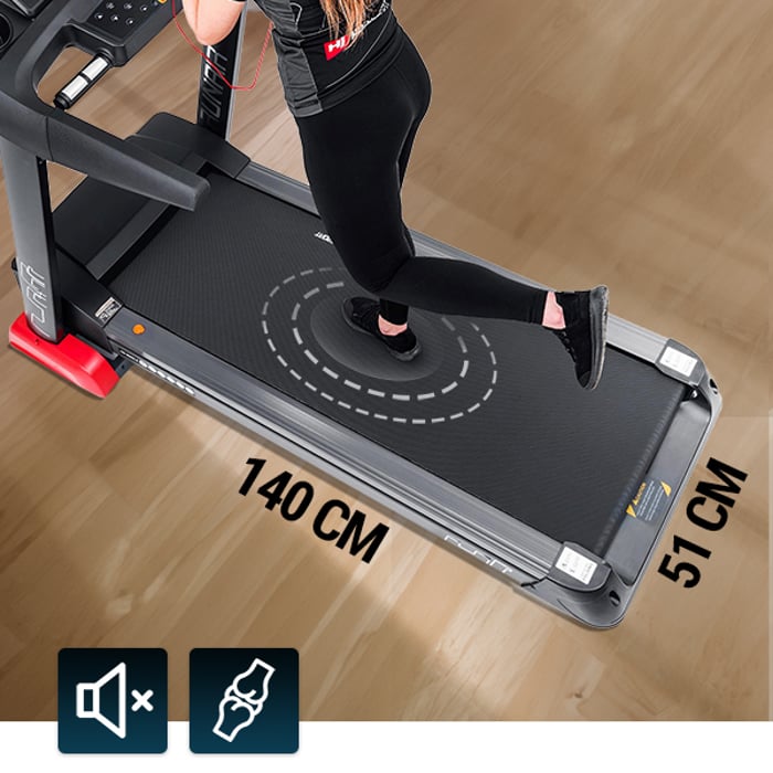 Na bežeckom páse Runair môžete cvičiť bez obáv z preťaženia kĺbov. Model HS-3500LB je na oboch stranách vybavený 4 tlmičmi, ktoré chránia kĺby a minimalizujú riziko zranenia. Použitý systém odpruženia tiež tlmí prenos vibrácií z bežeckého pásu na podlahu - výrazne znižuje hladinu hluku pri používaní zariadenia.