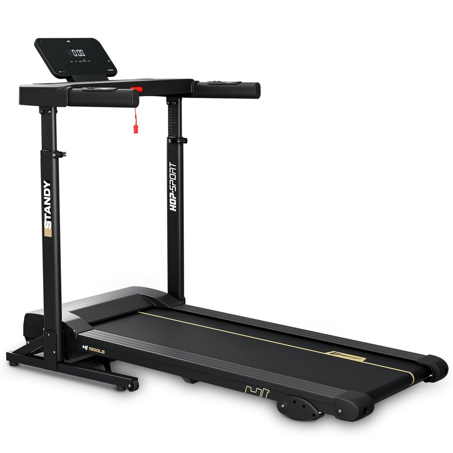 Elektrický bežecký pás HS-1900LB Standy je voľbou pre každého, kto chce pohodlne trénovať doma – bez zložitej obsluhy a bez toho, aby zaberal veľa miesta. Intuitívny počítač s displejom zobrazuje čas, rýchlosť, vzdialenosť, spálené kalórie a pulz a vďaka Bluetooth modulu prepojíš pás s kompatibilnými aplikáciami Kinomap, FitShow a Zwift, čím sa z bežného tréningu stane interaktívna trasa. Panel môžeš navyše vyklopiť a použiť ako stabilný stojan na notebook, takže počas pokojnej chôdze môžeš pracovať, pozerať seriály alebo sa učiť. Výkonný AC motor s výkonom 1,5 HP zabezpečuje plynulý chod v rozsahu 1–14 km/h a 3-stupňové nastavenie sklonu ti umožní jednoducho zvýšiť intenzitu tréningu. Komfortný bežecký pás s rozmermi 108 × 40 cm, nastaviteľná výška panelu a protišmykový povrch zaručujú pohodlné a bezpečné cvičenie. Po tréningu pás rýchlo zložíš a vďaka transportným kolieskam ho ľahko presunieš.
