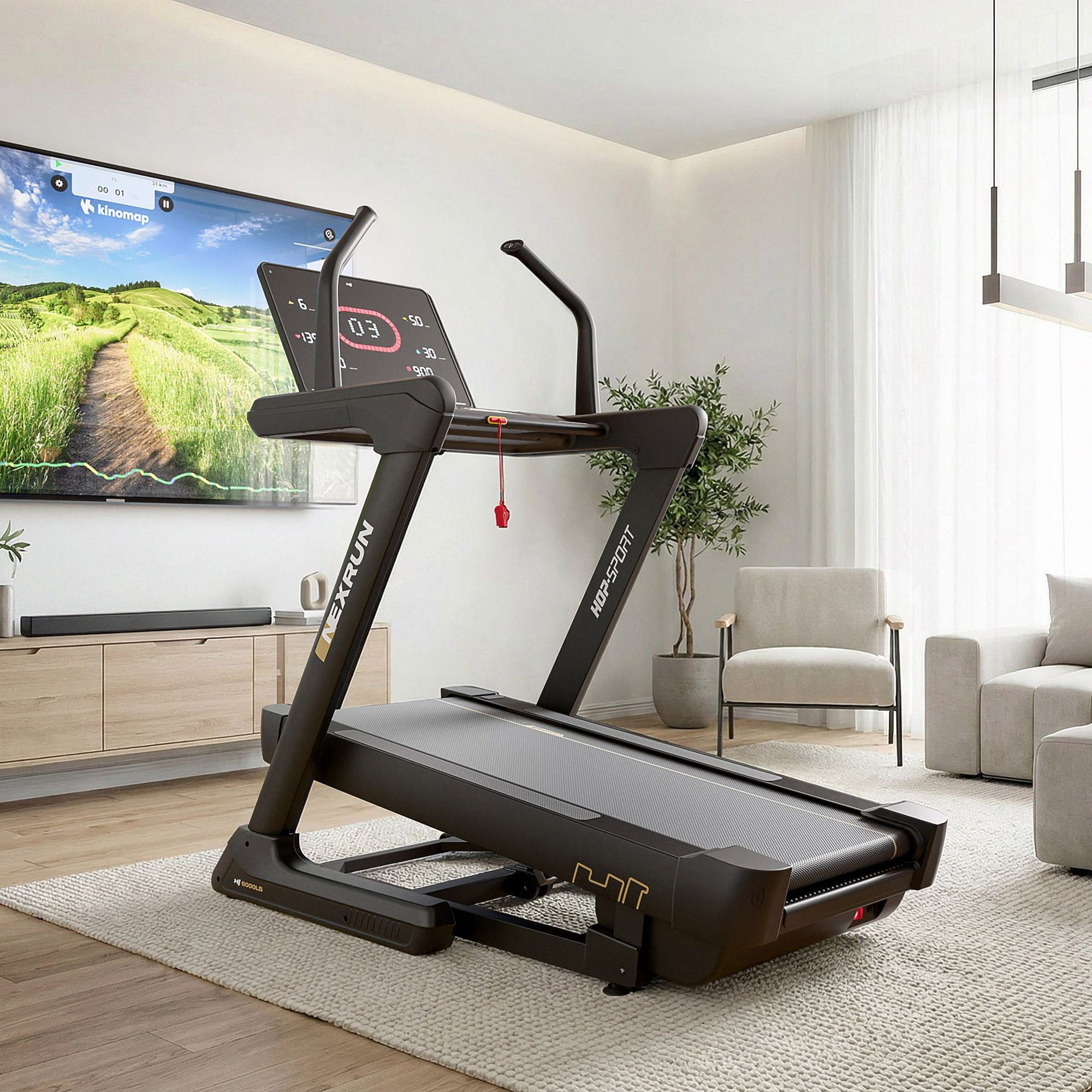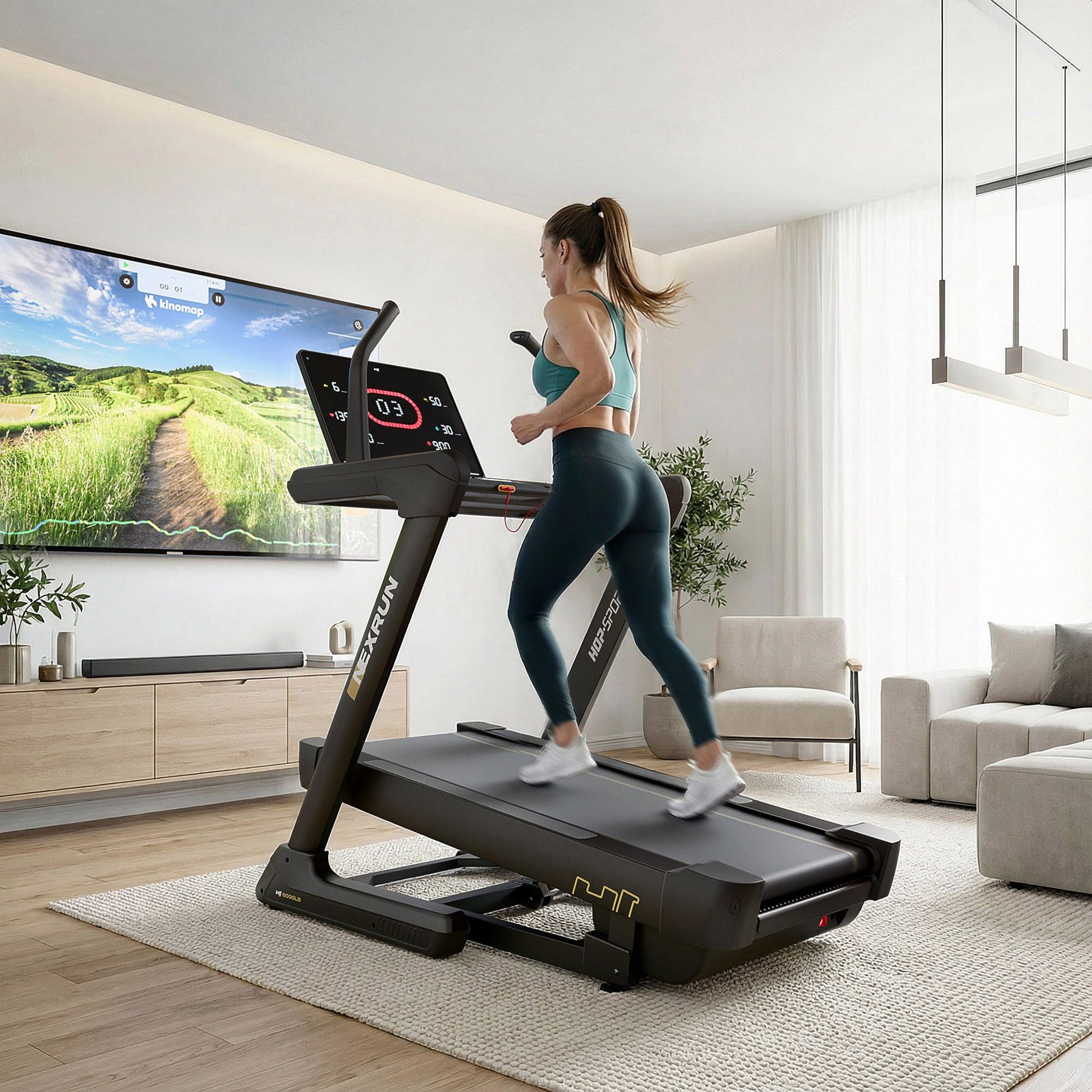 HS-6000LB Nexrun je bežecký pás s Bluetooth, vďaka ktorému bude tréning oveľa zaujímavejší. Bezdrôtovo ho pripojíte ku kompatibilným aplikáciám Kinomap, Fitshow a Zwift a prenesiete svoje tréningy na virtuálne trasy z celého sveta (stačí si niektorú stiahnuť do telefónu). Môžete behať v realistických scenériách, zapojiť sa do výziev alebo sledovať svoj pokrok interaktívnou formou. Navyše pás ponúka bezdrôtové nabíjanie telefónu, takže Váš smartfón bude vždy pripravený – bez káblov a bez prerušovania tréningu.
