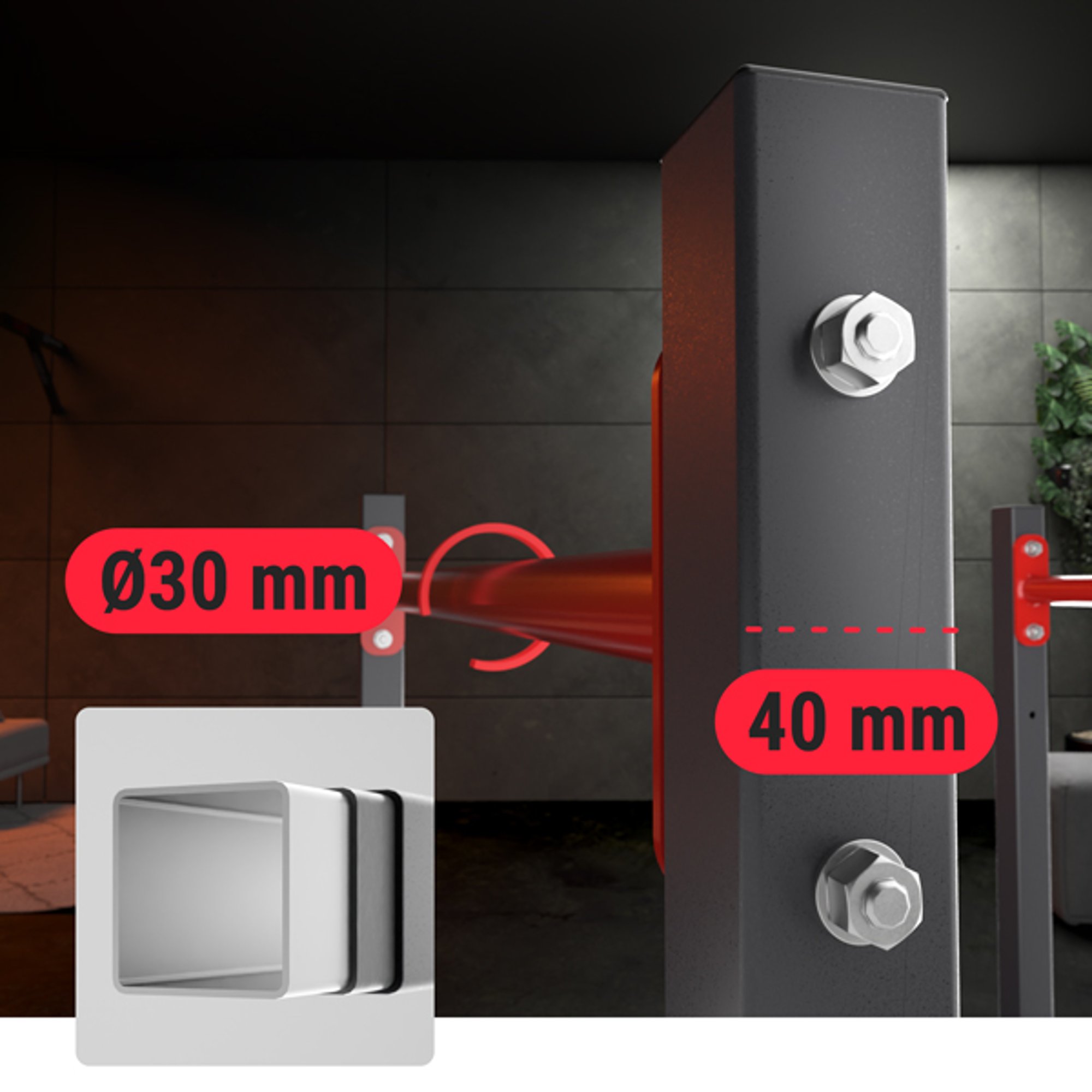 Tyč v bradlách HS-1011K je možné nastaviť v dvoch výškových úrovniach: 86 cm a 96 cm, vďaka čomu môžete prispôsobiť nastavenia zariadenia Vašim individuálnym potrebám.
