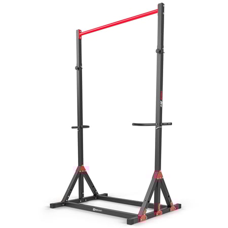 Objavte všetky možnosti, ktoré ponúka model HS-1015K! Prídavné držiaky pripevnené k tyči môžu slúžiť ako rukoväte na priťahovanie alebo ako rukoväte na vykonávanie klikov. Okrem toho je možné nastaviť rozstup rukovätí v rozsahu od 56 do 73 cm.