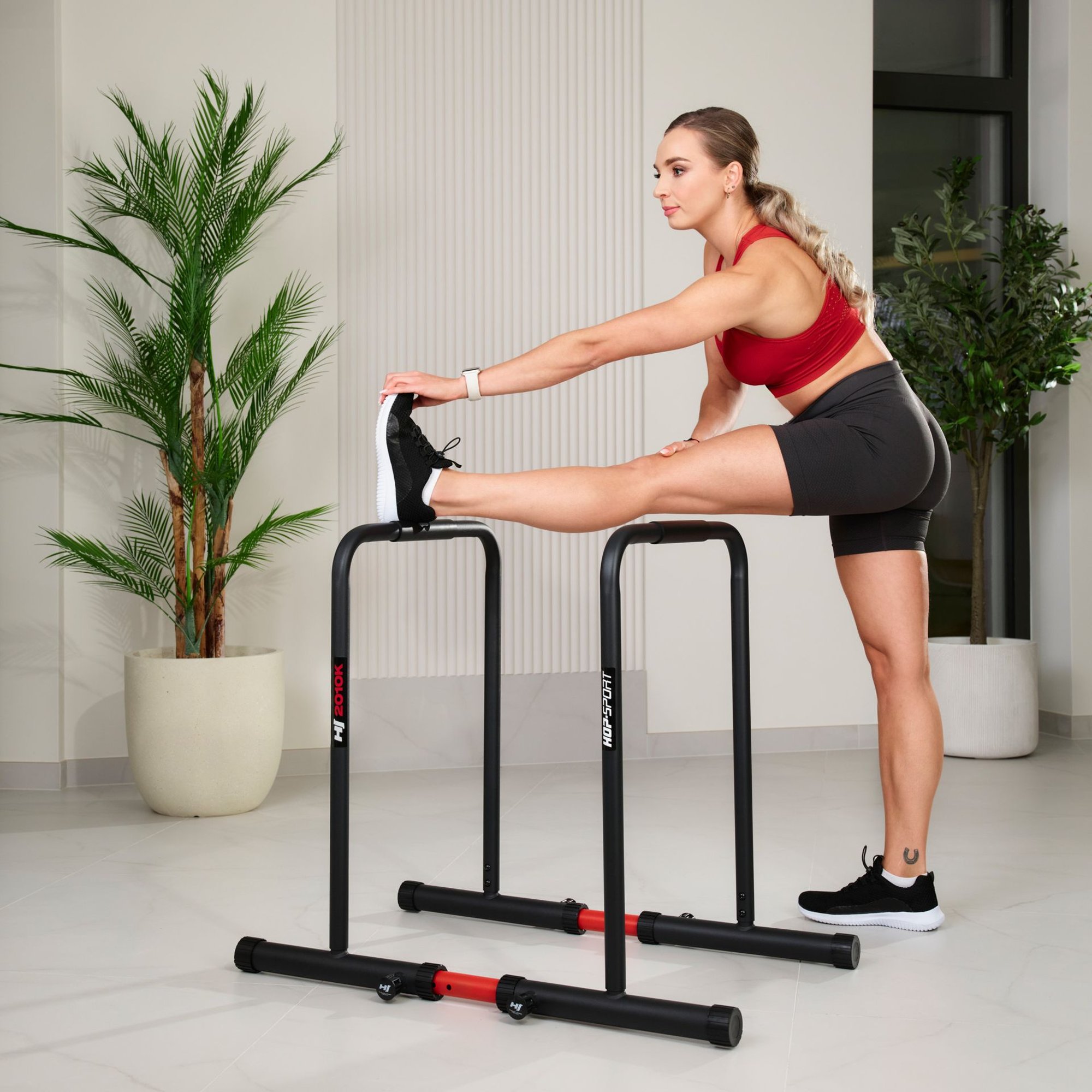 Paralelné bradlá HS-2010k ponúkajú stabilitu, pevnosť a presnosť v jednom sete – maximálne zaťaženie až 500 kg umožňuje aj tie najintenzívnejšie tréningy. Nastaviteľné bradlá boli navrhnuté s ohľadom na odolnosť. Konštrukcia zaručuje bezpečný úchop a možnosť presného nastavenia zariadenia podľa vašich potrieb. Nastaviteľná výška a šírka umožňujú použitie bradiel ako na klasické kliky, tak aj na kalistenický tréning. Určené na použitie v domácej posilňovni.