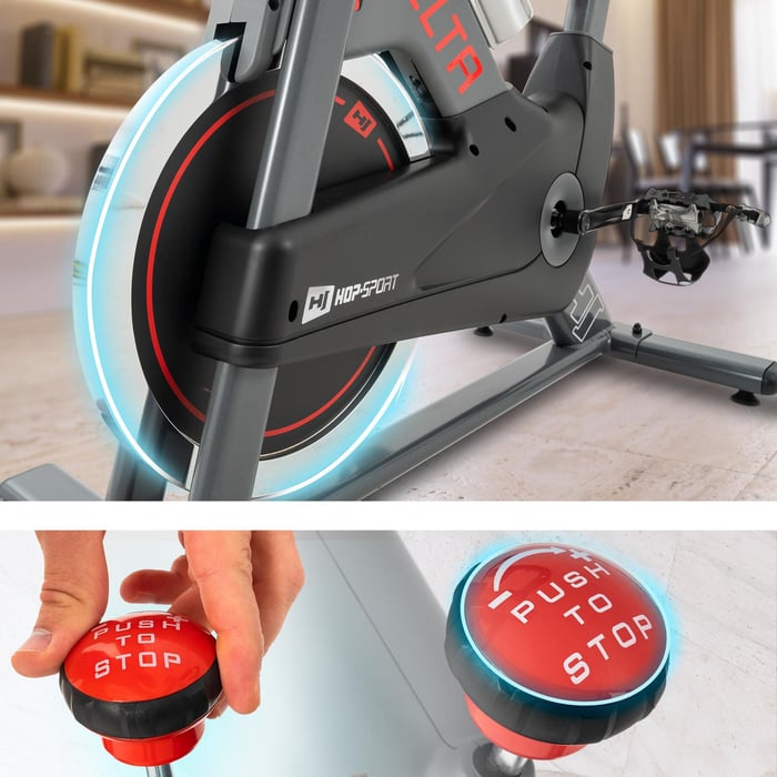 Cvičte a nebojte sa o svoju bezpečnosť! Zariadenie Delta má špeciálne bezpečnostné prvky, ktoré zabezpečujú bezpečnosť aj pri intenzívnom tréningu. Pedále sú zaistené systémom popruhov, ktoré zabraňujú šmýkaniu nôh. Zotrvačník s hmotnosťou 20 kg je navyše uzavretý a cyklotrenažér má bezpečnostnú brzdu tesne pod riadidlami, ktorá zariadenie okamžite zastaví. Brzda funguje aj ako plynulé nastavenie odporu.