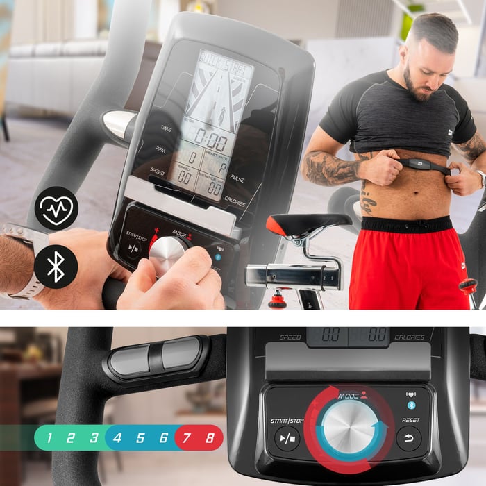 Pri cvičení na cyklotrenažéri HS-065IC Delta si môžete ľahko prispôsobiť nastavenia tréningu podľa Vašich cieľov a úrovne fyzickej zdatnosti. Počítač zobrazuje parametre ako: rýchlosť, vzdialenosť, čas tréningu, spálené kalórie, pulz, RPM (otáčky za minútu). Ponúka tiež prednastavené tréningové programy. Navyše vďaka stojanu na tablet alebo telefonické zariadenie môžete počas tréningu sledovať film alebo počúvať svoju obľúbenú hudbu.