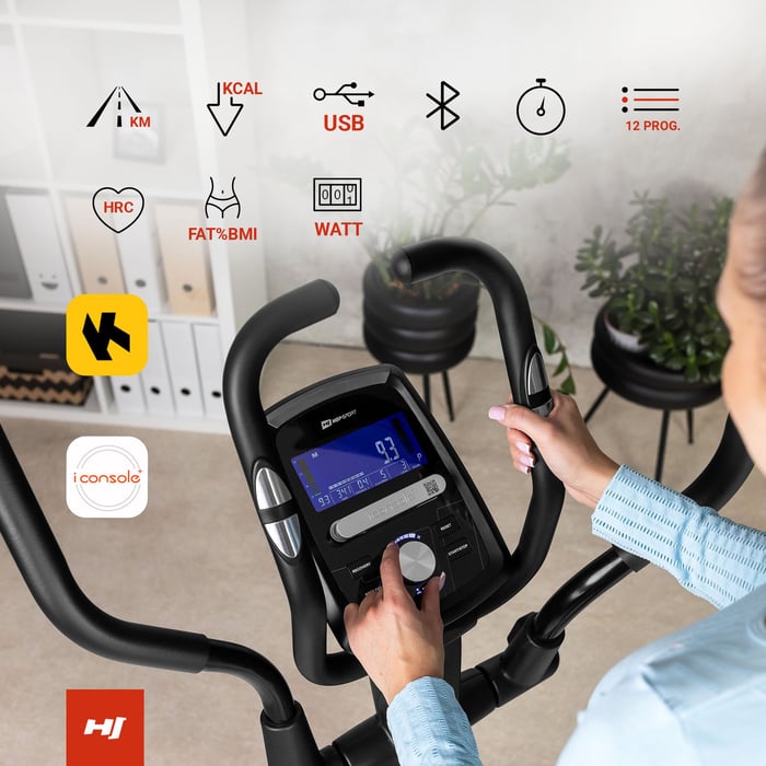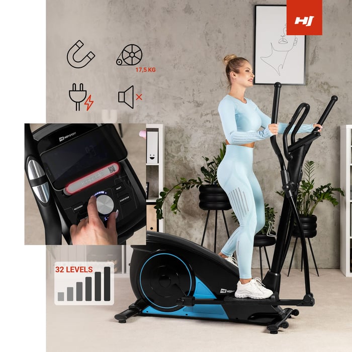Eliptický trenažér HS-060C Blaze Vám umožní vylepšiť kondíciu a vytvarovať postavu bez zbytočného namáhania kĺbov. Trenažér je vybavený multifunkčným počítačom s meraním pulzu a funkciou Bluetooth 4.0. Orbitrek zahŕňa aj držiak na tablet alebo mobilné zariadenie pomocou ktorého môžete počas cvičenia sledovať film alebo počúvať svoju obľúbenú hudbu. Systém magnetického odporu (17,5 kg) zaručuje plynulú a tichú prevádzku zariadenia. Pohodlie a bezpečnosť počas tréningu zvyšujú nastaviteľné protišmykové pedále a vyrovnávacie nožičky, zatiaľ čo transportné kolieska zabezpečujú plnú mobilitu zariadenia. Eliptické trenažéry sú ideálnou voľbou pre domáce tréningy.