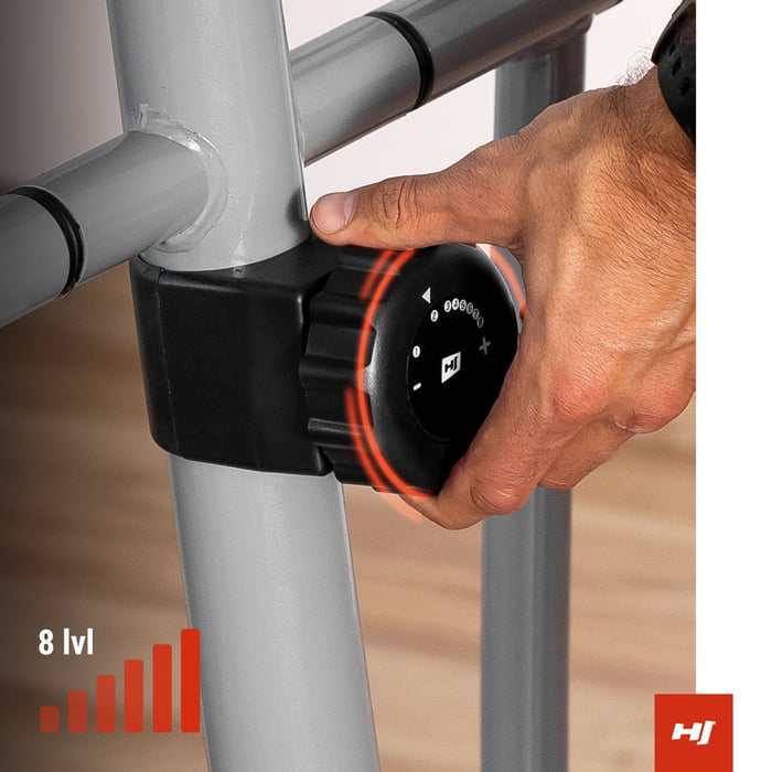 Eliptický trenažér Cosmo je vybavený praktickým, otočným gombíkom, ktorý umožňuje plynulé nastavenie záťaže. Nachádza sa pod displejom na hlavnom ráme eliptického trenažéra. Ľahko si môžete zvoliť úroveň záťaže zodpovedajúcu vašim individuálnym preferenciám a intenzite tréningu. Široká škála záťaže umožňuje cvičiť nielen začiatočníkom, ale aj pokročilým cvičencom.
