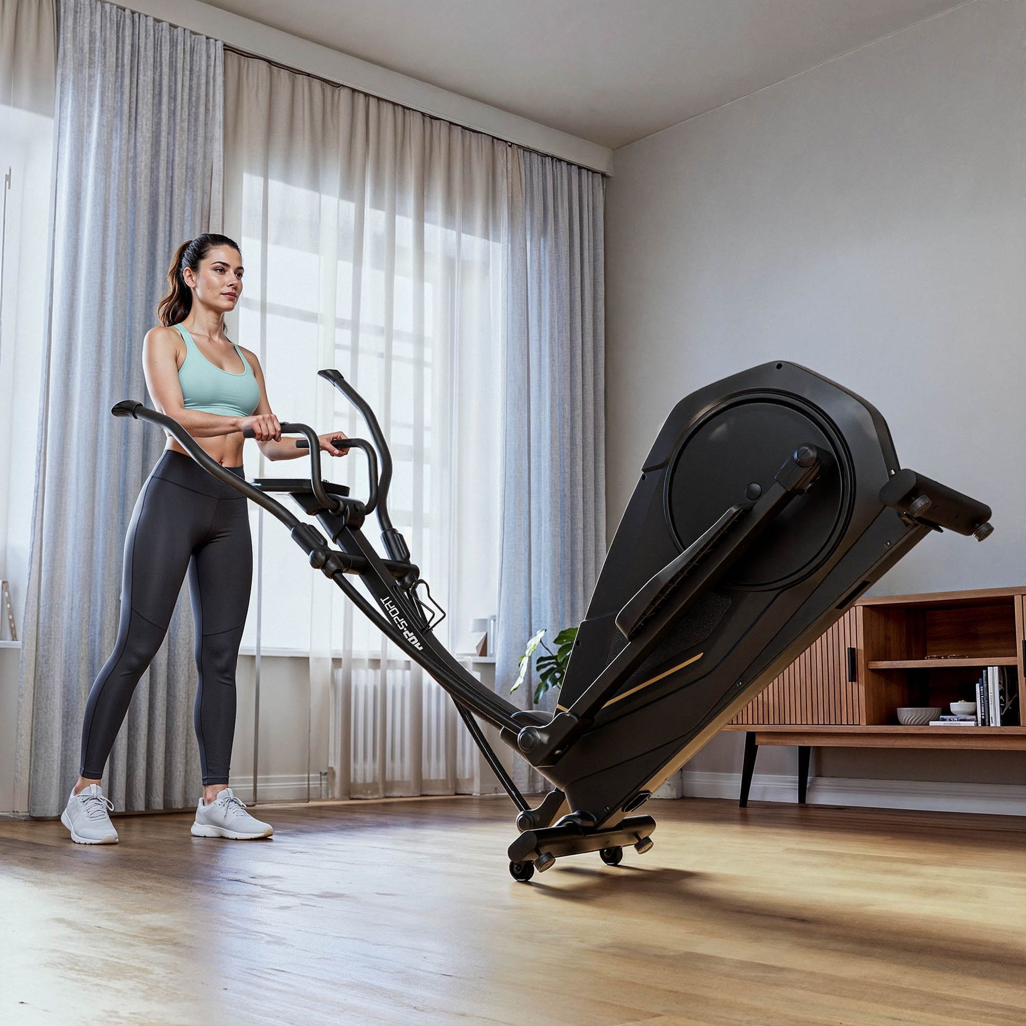 Eliptický trenažér do bytu HS-5000C Rayner je skonštruovaný tak, aby vydržal intenzívne tréningové zaťaženie a zároveň bol pohodlný na každodenné používanie. Napriek stabilnej konštrukcii sa stroj presúva naozaj ľahko – stačí uchopiť madlo a využiť integrované transportné kolieska na premiestnenie na iné miesto. Je to skvelé riešenie, ak cvičíte v menšom byte alebo jednoducho preferujete mať po tréningu priestor uprataný a stroj odložený.