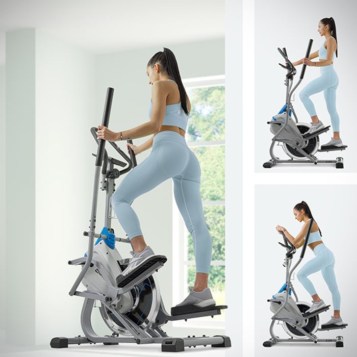 Climber Icon je kombinácia moderného eliptického trenažéra a stepperu, ktorá splní požiadavky aj tých najnáročnejších užívateľov. Vďaka tomu, že je skladaný, zaberá málo miesta, takže bude ideálnym riešením pre ľudí, ktorí ho nemajú príliš veľa. Climber umožňuje zapája do práce ešte viac svalov ako na klasickom trenažéri, čo zvyšuje efektivitu každého tréningu. Systém magnetického odporu s 8 kg zotrvačníkom zaisťuje hladký chod stroja. Vďaka pokročilému počítaču môžete jednoducho sledovať aktuálne parametre ako vzdialenosť, spálené kalórie, čas a pulz. Climber Icon bude ideálny pre tých, ktorí chcú zhodiť zbytočné kilogramy, ako aj pre ľudí, ktorí chcú pracovať na svalovej hmote.