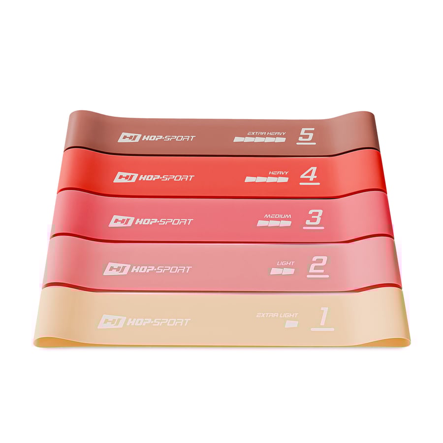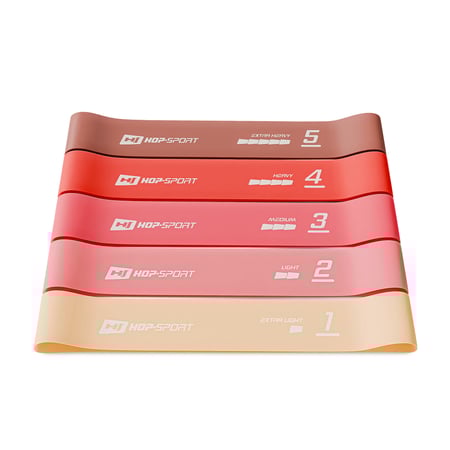 Sada odporových gúm 600x50mm HS-L650RLR od Hop-Sport v odtieňoch červenej farby obsahuje päť odporových gúm s rôznou úrovňou odporu, ktoré budú ideálne pre domáce cvičenie. Ich univerzálne využitie znamená, že ich využijete pri rôznych typoch tréningu – od silových, cez kondičné, až po rehabilitačné cvičenia. Cvičenie na páse vám pomôže posilniť svaly a kĺby na celom tele. Odporúčajú sa pre amatérov aj pokročilých používateľov. Súprava HS-L650RLR obsahuje päť latexových gúm, ktoré ponúkajú rôzne úrovne odolnosti so širokým rozsahom od 2,5 do 18 kg. Vďaka malým rozmerom sa gumy veľmi ľahko prepravujú a skladujú.
