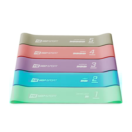 Princíp odporových pásov je taký, že čím viac ich natiahnete, tým väčší odpor vytvárajú. Vďaka tomu ľahko prispôsobíte záťaž fáze tréningu, v ktorej sa práve nachádzate. Každá z piatich gumičiek v súprave HS-L650RLL generuje iný rozsah zaťaženia – od najľahšej po najtmavšiu: 2,5 – 4,5 kg, 4,5 – 7 kg, 7 – 9 kg, 11 – 14 kg, 14 – 18 kg .