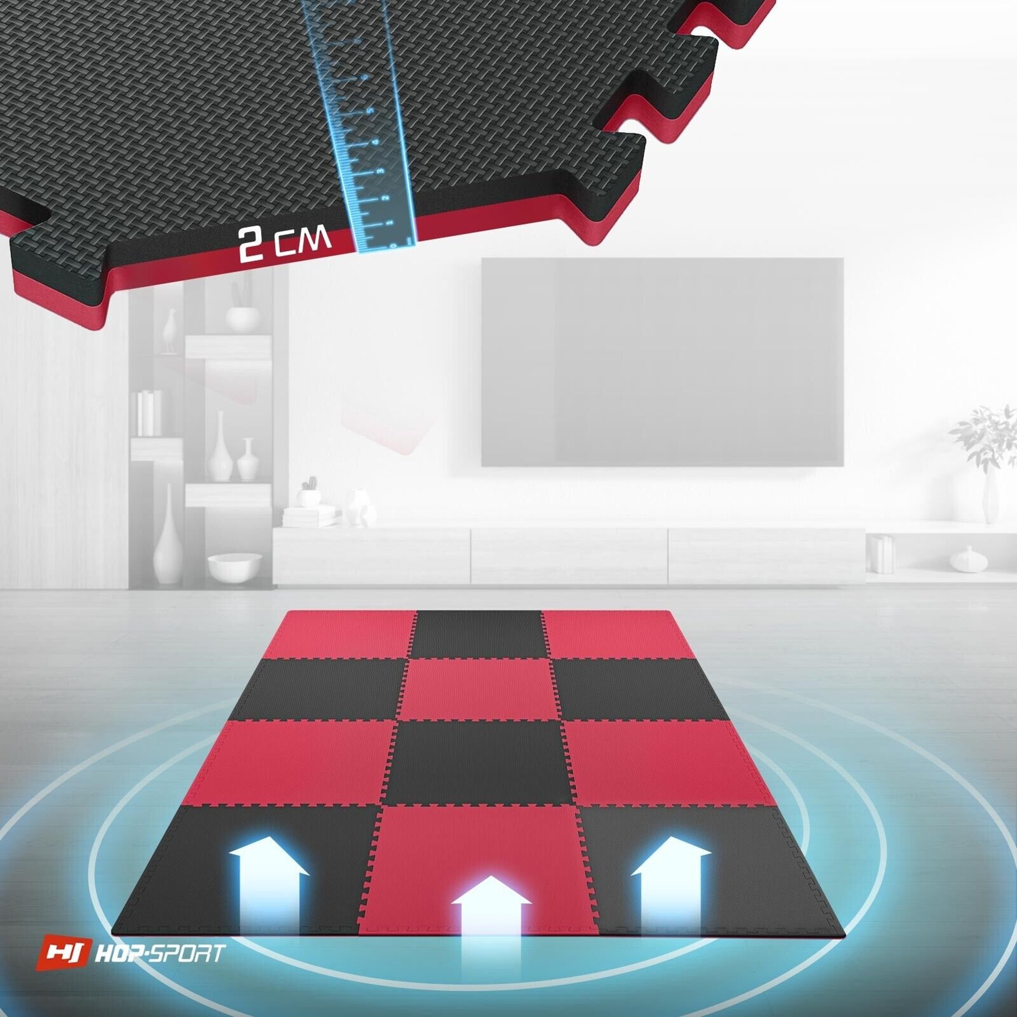 Podložka HS-A020PM vďaka hrúbke 2 cm poskytuje vynikajúcu ochranu podláh (ako napr. drevené parkety alebo keramické dláždice). Znižuje riziko poškriabania alebo zašpinenia podlahy, ktoré môže byť spôsobené tréningovým zariadením alebo príslušenstvom na silový tréning. Okrem toho zvyšuje tlmenie počas tréningu a poskytuje stabilitu zariadenia. Účinne znižuje hluk a vibrácie, ktoré vznikajú počas intenzívneho tréningu.
