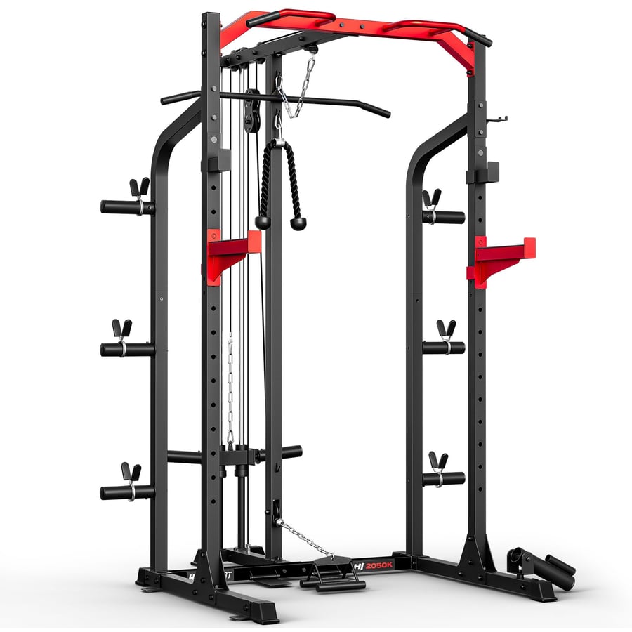HS-2050K je tréningová klietka pre tých, ktorí chcú mať doma jednu poriadnu tréningovú základňu namiesto viacerých samostatných strojov. Na jednej konštrukcii zvládnete všetko – od zhybov a cvičenia na kladke, cez drepy a tlak na lavičke, až po tréning s landmine a hrazdou na zhyby. Veľký rozsah nastavenia Vám umožní prispôsobiť si ju presne podľa seba – bez ohľadu na výšku alebo štýl cvičenia. Je pevná, stabilná a navrhnutá na pravidelné používanie, takže Vám dá slobodu precvičiť celé telo v pohodlných a bezpečných podmienkach, aj počas tréningu osamote.