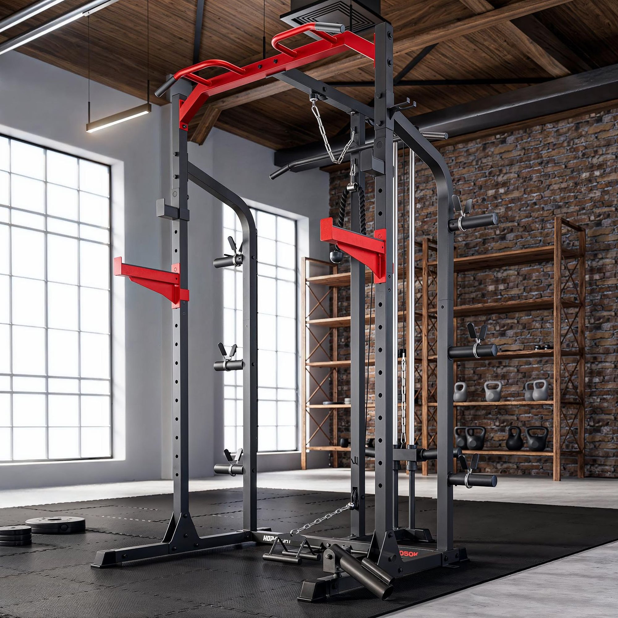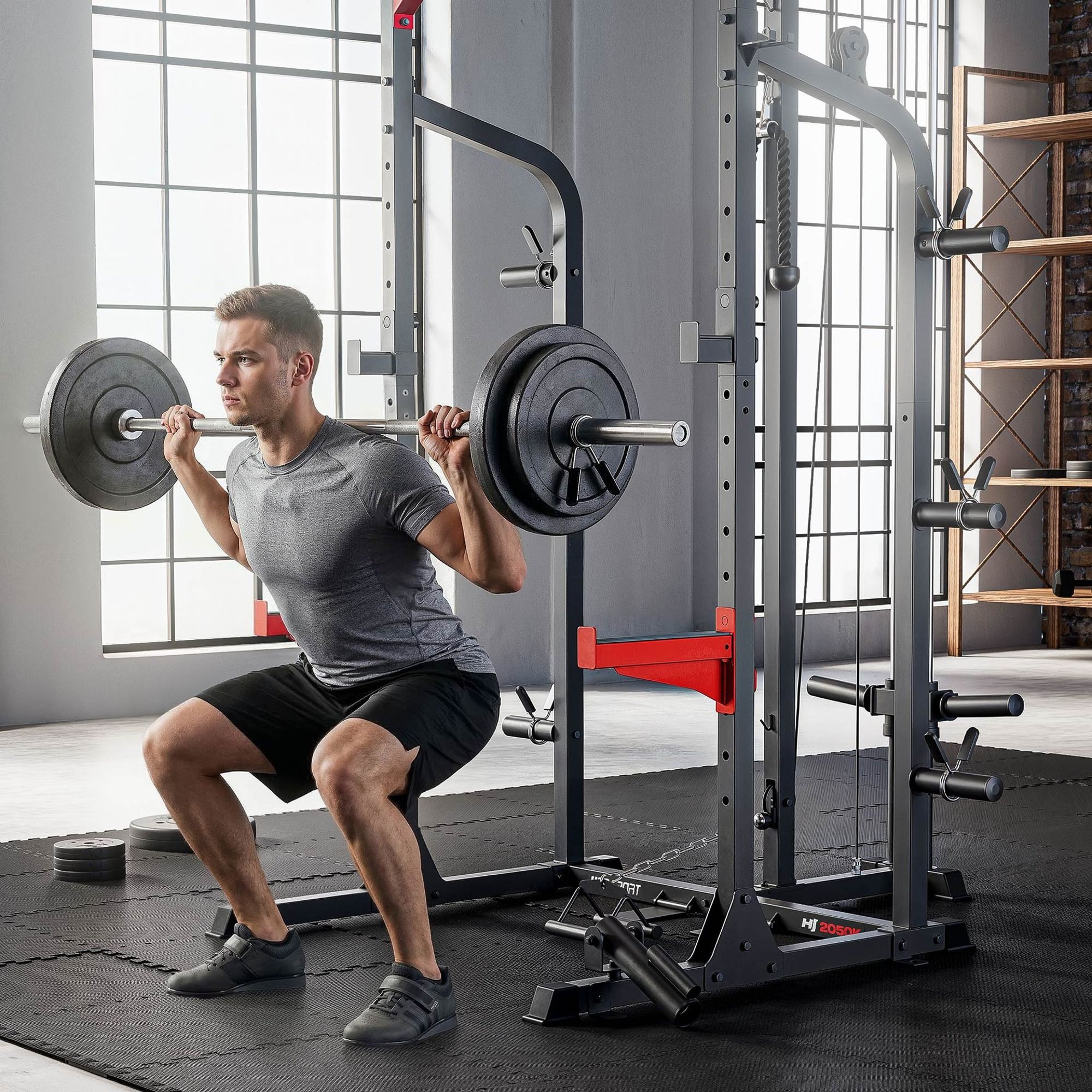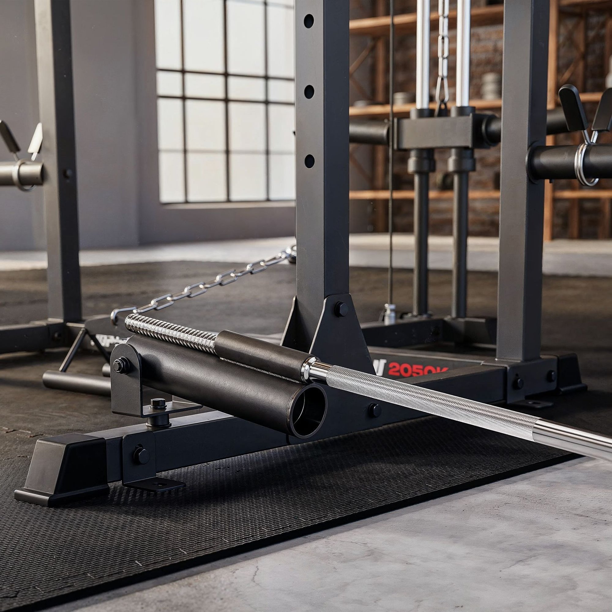 HS-2050K je tréningová klietka, ktorá bez problémov nahradí viacero zariadení v domácej posilňovni. Máte tu hornú aj spodnú kladku, hrazdu na zhyby, nastaviteľné držiaky na os, dvojitý landmine (30 mm a 50 mm) aj oporné platformy na nohy. Vďaka tomu môžete trénovať celé telo – silovo aj funkčne – bez toho, aby ste museli neustále presúvať vybavenie alebo dokupovať ďalšie stroje.