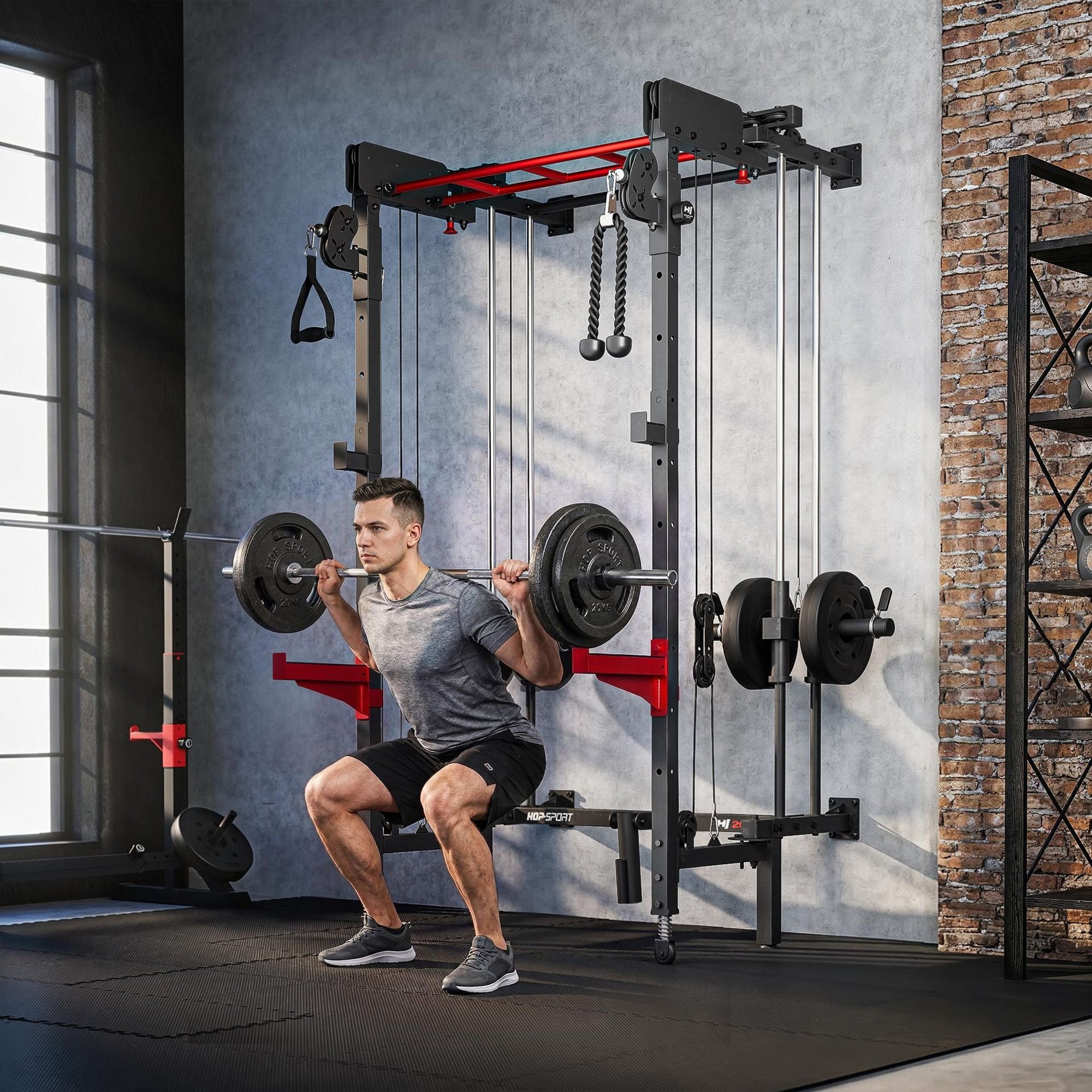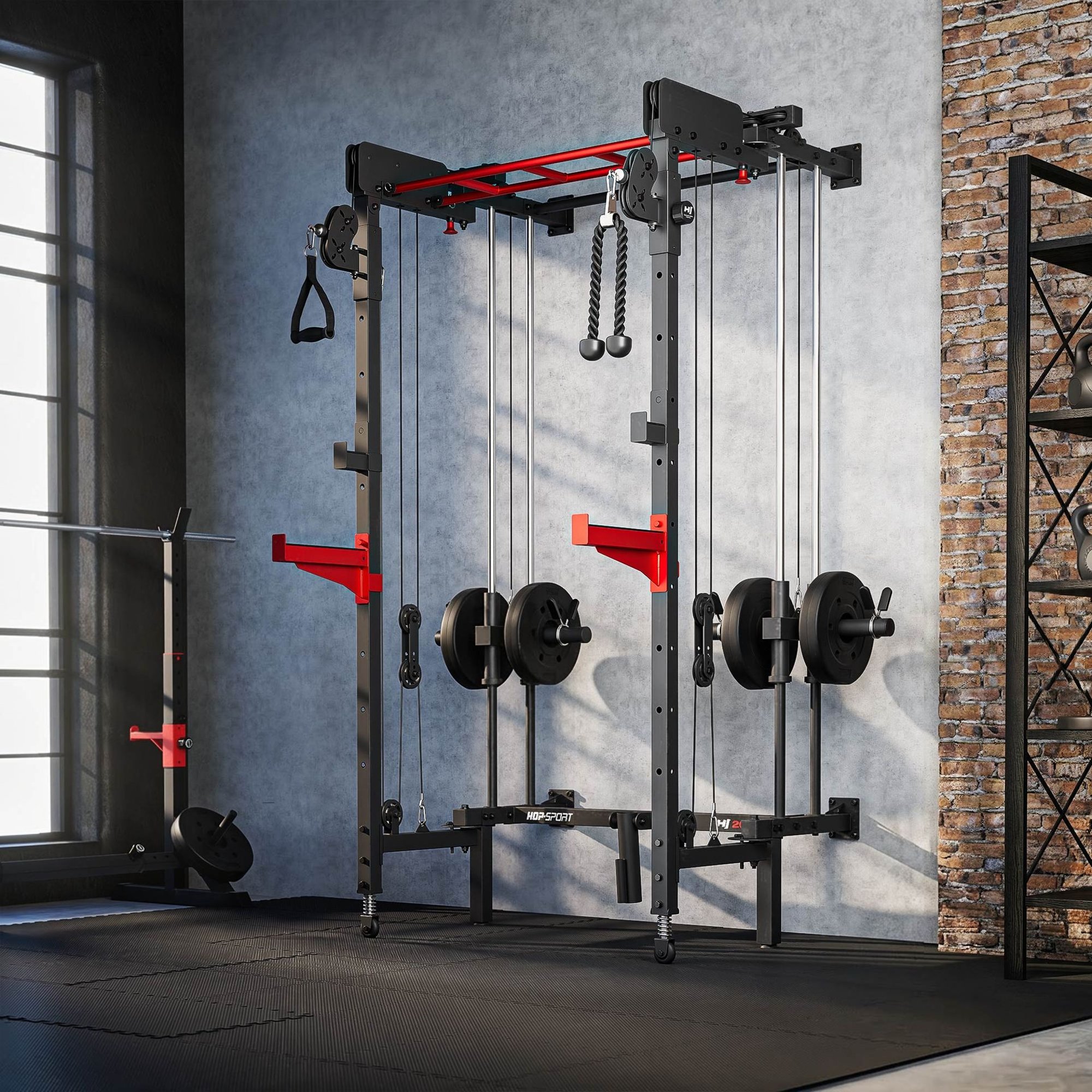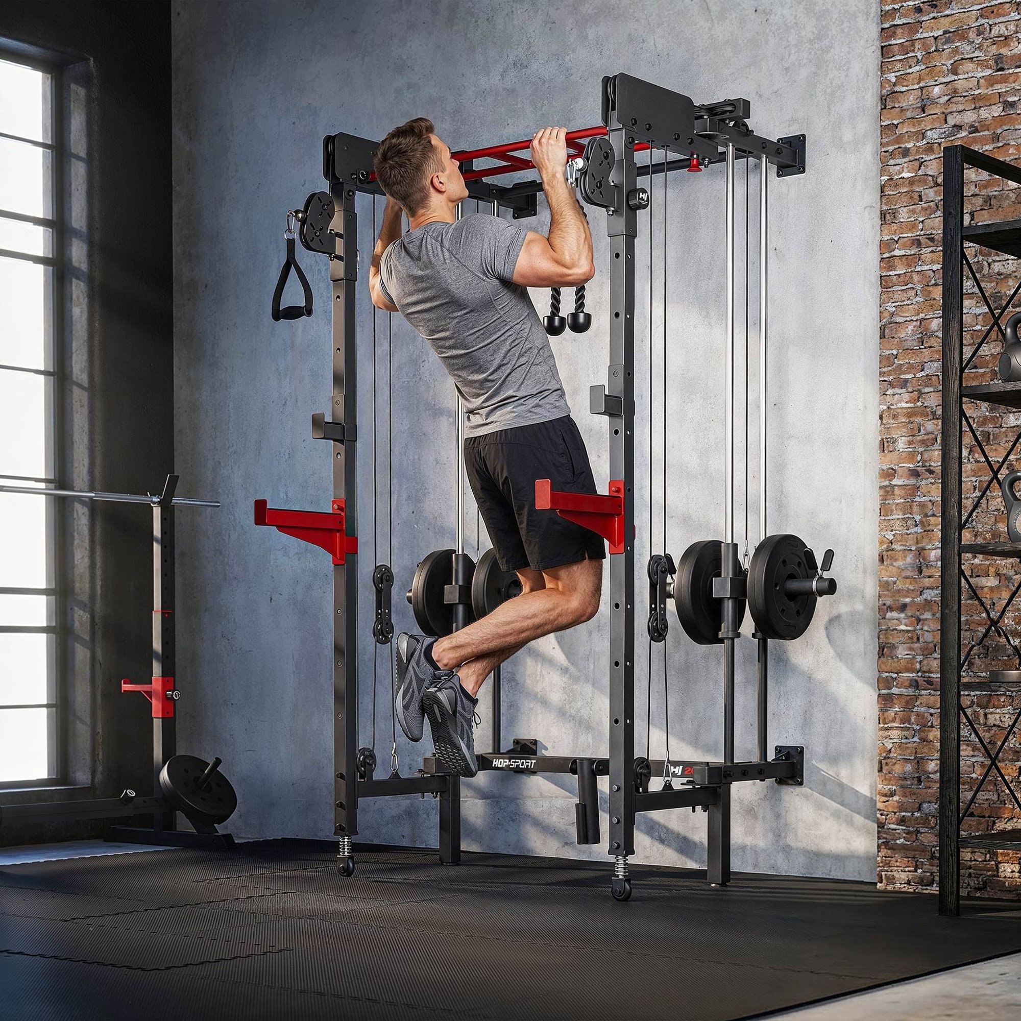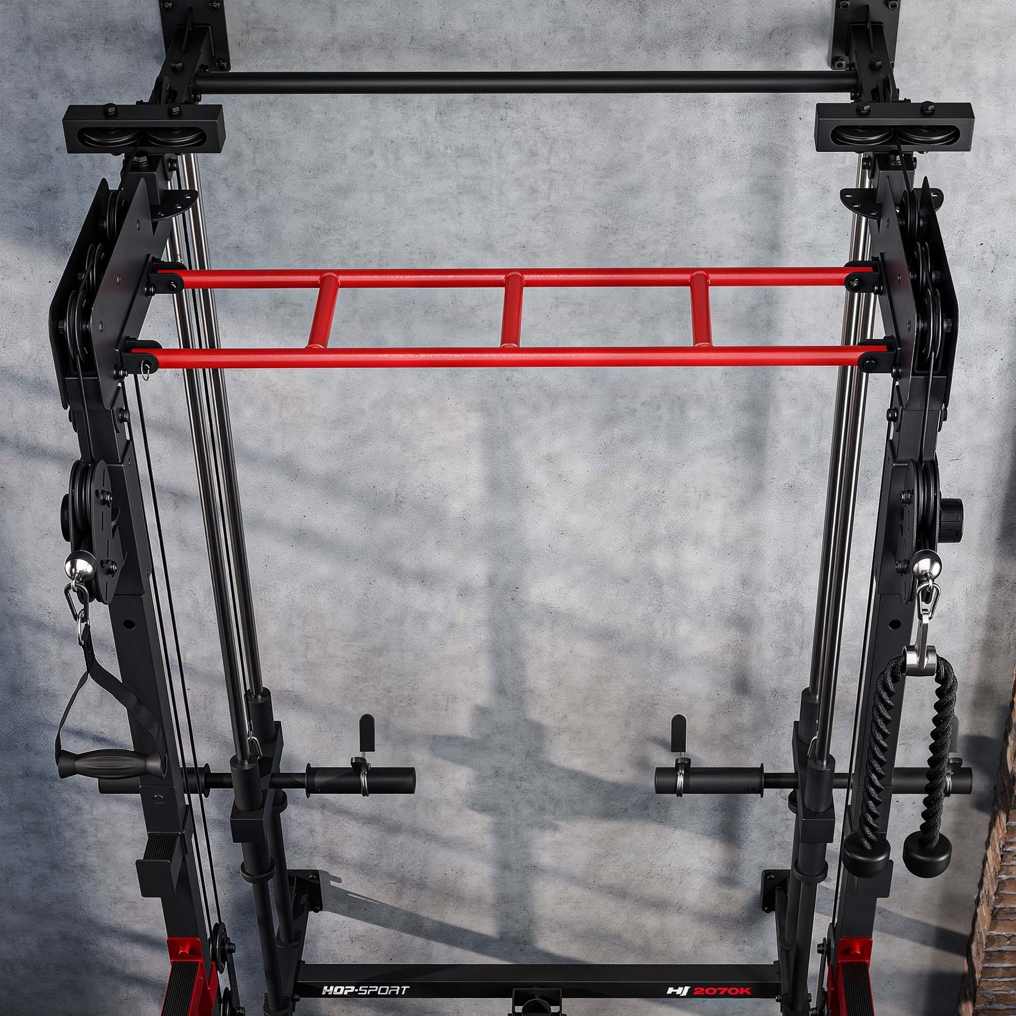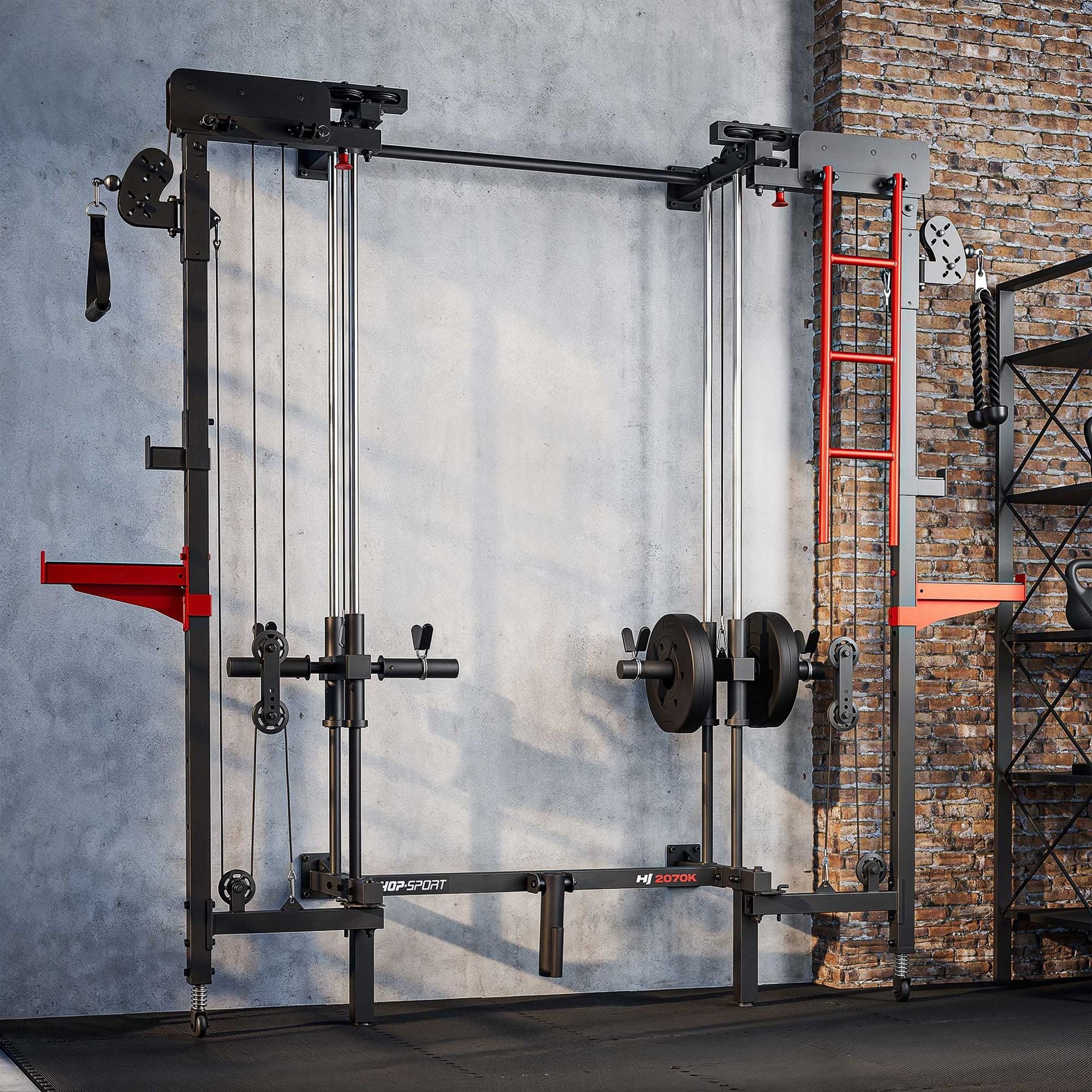 Tréningová klietka HS-2070K je odpoveďou pre tých, ktorí chcú maximum funkčnosti v domácom priestore. Táto multifunkčná klietka spája klasický power rack, pevnú hrazdu na zhyby a dva nezávislé kladkové systémy horný–dolný.