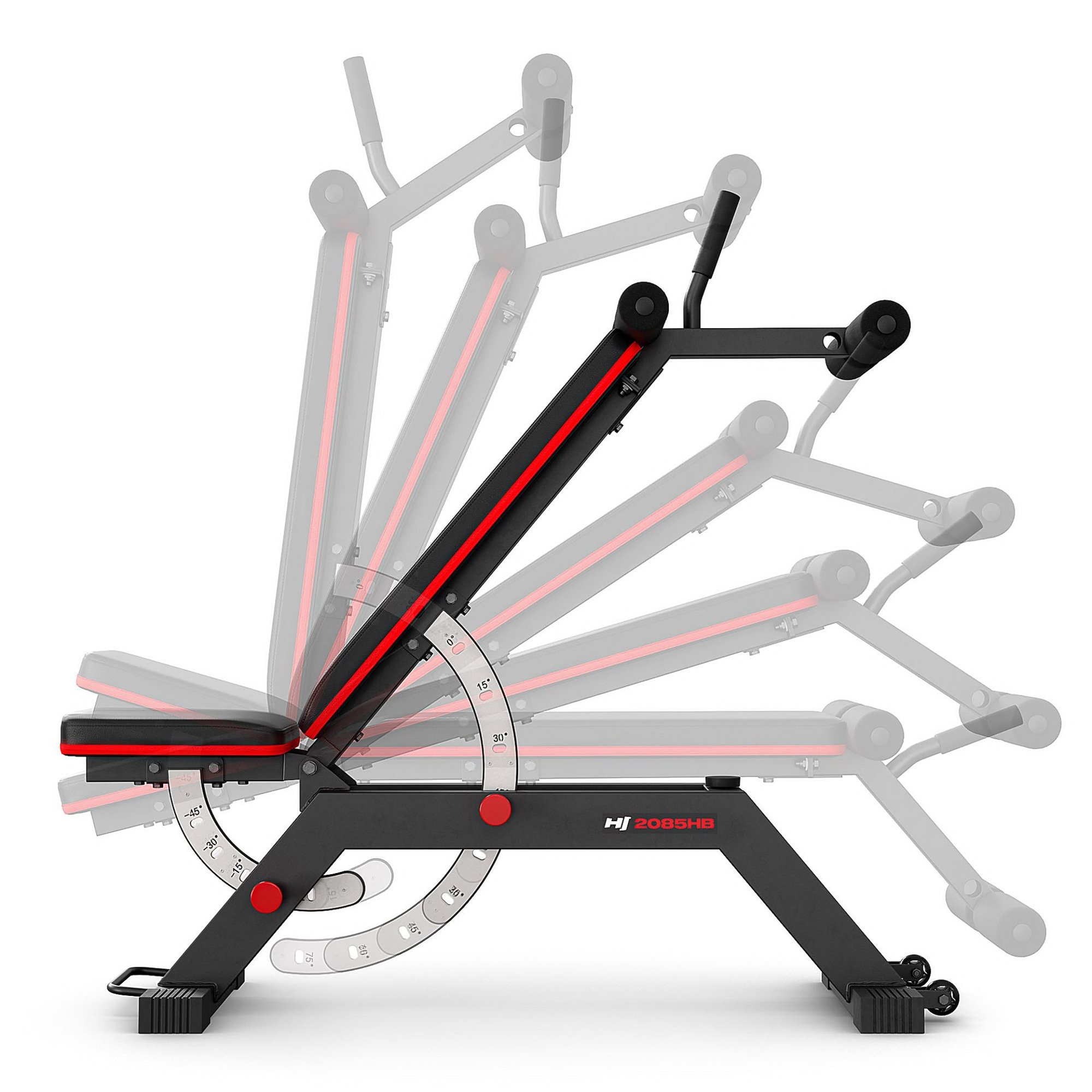 Táto nastaviteľná tréningová lavica poskytuje plnú kontrolu nad polohou tela. Nastavenie jednoducho prispôsobíte typu cvičenia aj úrovni pokročilosti. Operadlo ponúka 6 stupňov nastavenia: 0°, 15°, 30°, 45°, 60° a 75°. Sedadlo má 5 uhlov sklonu – od -45° do 15°. Vďaka tomu možno tréningovú lavicu HS-2085HB používať ako rovnú, šikmú aj úplne rozloženú lavicu. Jedno riešenie. Maximálna voľnosť tréningu.