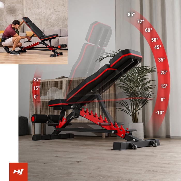 Pri silovom tréningu je veľmi dôležité správne zladiť zariadenie s typom vykonávaného tréningu. Použitie 10-stupňového nastavenia chrbtovej opierky a 3-stupňového nastavenia sedadla vám dáva možnosť vykonávať cviky v negatívnom sklone, s lavicou nastavenou naplocho a v sede, kedy sa váš chrbát pohodlne dotýka operadla. Za uzamknutie lavičky vo zvolenej polohe sú zodpovedné silne zakrivené „háky“, ktoré zaručujú, že lavička nezmení svoju polohu napríklad pri vytláčaní činky, čím je zaistená maximálna bezpečnosť.