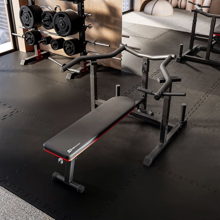 Tréningová lavička na bench press HS-2100HB zabezpečuje stabilný a bezpečný silový tréning. Zvládne maximálne zaťaženie 250 kg, takže sa na ňu môžete spoľahnúť aj pri intenzívnom cvičení. Stojany unesú až 75 kg každý, teda spolu 150 kg – máte plnú kontrolu nad pohybom. Pevný rám a stabilné nožičky eliminujú vibrácie. Široké sedadlo a operadlo podporujú správnu polohu tela počas cvičenia. Odolná konštrukcia Vám umožní trénovať bez obáv o bezpečnosť.
