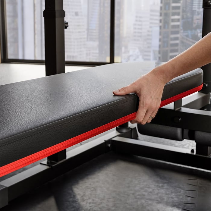 Praktické riešenia zvyšujú komfort aj bezpečnosť tréningu. Ochranné penové valce chránia telo pred odreninami. Protišmykové koncovky stabilizujú lavičku a chránia podlahu pred poškriabaním. Hrubé 5 cm čalúnenie zabezpečuje pohodlie aj pri intenzívnom cvičení. Pevné profily 50 × 50 mm zvládajú maximálne zaťaženie 250 kg. Lavičku je možné zložiť do zvislej polohy, čím ušetríte miesto v domácej posilňovni, byte aj garáži. Skladacia tréningová lavička HS-2100HB spája funkčnosť, odolnosť a komfort.