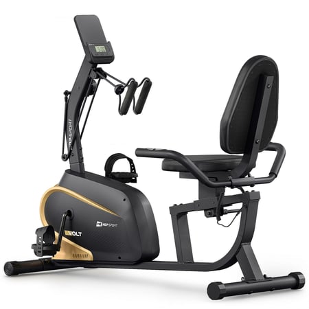 Recumbent HS-045L Volt s 10-stupňovou reguláciou odporu, expandérmi a ergonomickým sedadlom na pohodlný tréning doma.