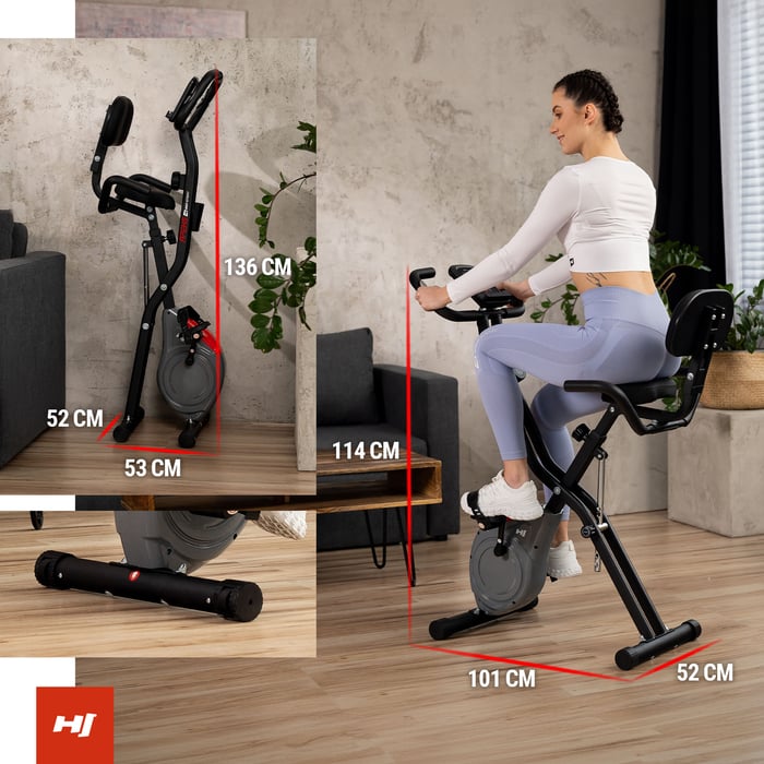 Hľadáte rotoped, ktorý vám umožní vykonávať intenzívne kardio cvičenie a nebude obmedzovať váš tréningový priestor? Vyberte si skladací Xbike HS-3030X Apeks od Hop-Sport, ktorého výšku sedadla a uhol otvorenia môžete pohodlne nastaviť podľa svojich preferencií! Model X-bike vám dáva možnosť zmeniť polohu tela – môžete trénovať ako na tradičnom stacionárnom rotopede alebo ho premeniť na ekvivalent recumbentu. Nastavenie záťaže v rozsahu 10 stupňov umožňuje prispôsobiť intenzitu cvičenia vašej pokročilosti a stabilná konštrukcia zaisťuje bezpečnosť a garantovanú nosnosť až 120 kg.