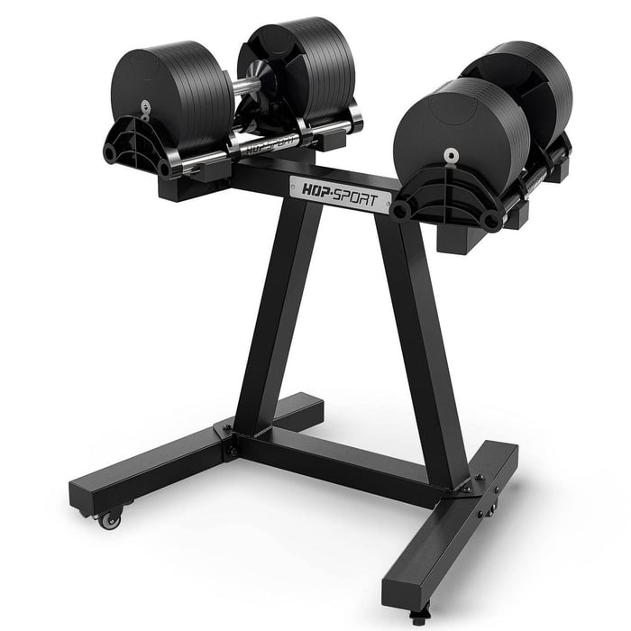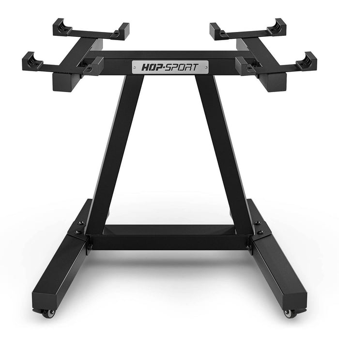 Vďaka štyrom vysunutým podperám s odolnými plastovými krytkami Vaše činky vždy ležia stabilne a sú chránené pred poškriabaním a posunutím. Dĺžka police 35,4 cm poskytuje optimálny priestor na pohodlné uchopenie činiek aj počas intenzívneho tréningu. Každá polica unesie až 75 kg, čo umožňuje bezpečné uloženie ťažších sád. Tento dvojúrovňový stojan je kompatibilný s nastaviteľnými činkami Hop-Sport HS-TG3040D, vďaka čomu je skvelým doplnkom domácej posilňovne.