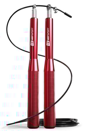 Hliníkové švihadlo s ložiskami HS-A020JR - červené - jednoduché a efektívne zariadenie, ktoré vám pomôže redukovať telesný tuk, vytvarovať svalstvo a zlepšiť vašu celkovú kondíciu. Inovatívny dizajn s použitím dvojitého ložiskového systému a kovového lanka vám umožňuje robiť viac skokov počas jednej otáčky lanka. Ďalšou výhodou tohto modelu je možnosť rýchleho prispôsobenia dĺžky lanka, vďaka čomu ho môžete ľahko prispôsobiť svojim aktuálnym potrebám. Vďaka svojej malej veľkosti a prijateľnej cene je HS-A020JR ideálne pre domácu posilňovňu.