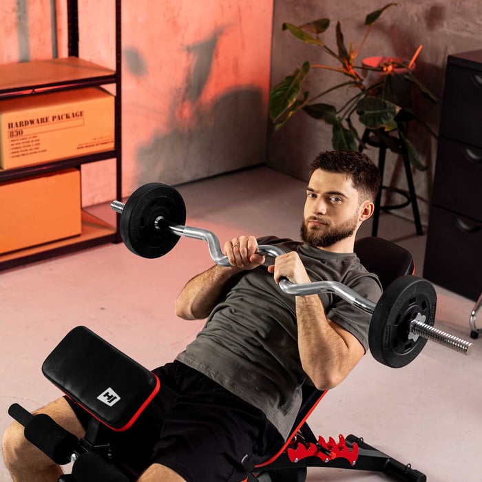 Rozmery boli prepracované tak, aby boli maximálne prispôsobené každodennému cvičeniu v domácej posilňovni. Silne ohýbaná tyč s dĺžkou 120 cm je ako stvorená na cviky s činkami– najmä na francúzske tlaky na lavičke. Konštrukcia umožňuje precvičiť predovšetkým horné svalové skupiny, zapájať bicepsy, tricepsy a ramená.