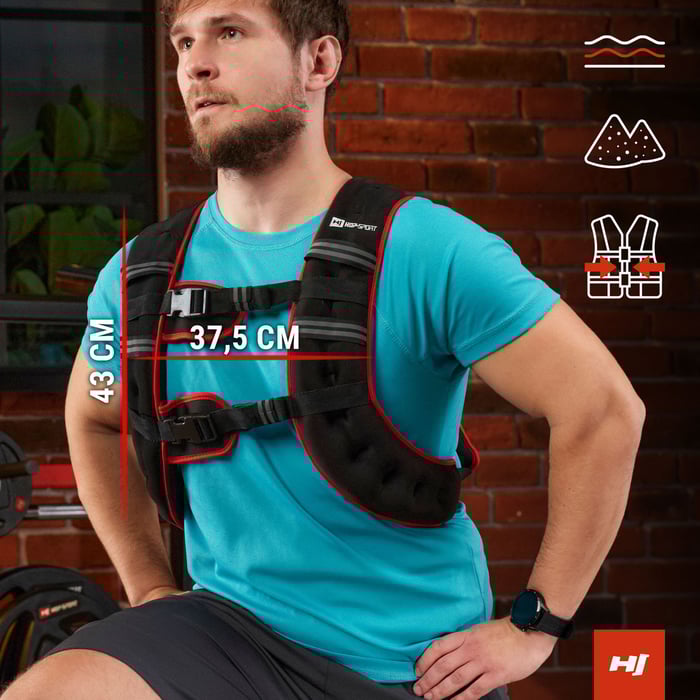 Záťažová vesta Hop-Sport je vyrobená z odolného a zároveň mäkkého neoprénu , ktorý je po celej ploche vyplnený pieskom, čo zaisťuje rovnomerné rozloženie hmotnosti. Praktické detaily ako zadné vrecko, odrazové elementy a dvojité zapínanie zvyšujú nielen pohodlie, ale aj bezpečnosť pri vykonávaní rôznych foriem aktivít. Vesta s hmotnosťou 10kg je skvelá tréningová pomôcka, ktorá vám pomôže zvýšiť intenzitu cvičenia a rýchlejšie dosiahnuť požadované výsledky bez nadmernej záťaže kĺbov.
