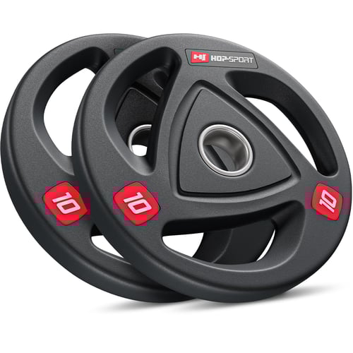 Sada olympijských závaží 2x10kg je vyrobená z pevnej liatiny, potiahnutá protišmykovou gumou, ktorá ktorá je zárukou ochrany podlahy a tlmenia zvuku pri páde. Oceľový krúžok s priemerom 51 mm zaručuje vysokú odolnosť olympijských kotúčov pri ich častej výmene na hriadeli/tyči. Olympijské závažia s hmotnosťou 10 kg majú vytlačenú informáciu o hmotnosti, čo uľahčuje rýchlu identifikáciu a zmenu závažia. Ergonomické drážky s jedinečným tvarom poskytujú nielen bezpečnosť a pohodlie pri prenášaní, ale aj všestranné použitie (ako napr. crossfit, kettlebell atď.)